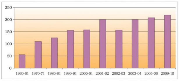 Production of Food grains in India (Million Tonnes) (Source: Economic Survey, 2011-12).