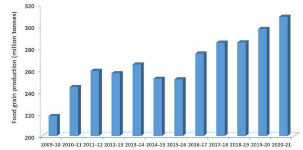 Total food grain production trend in India during 2009–2010 and 2020–2021. (Source: Ministry of Agriculture & Farmers’ Welfare, Government of India)
